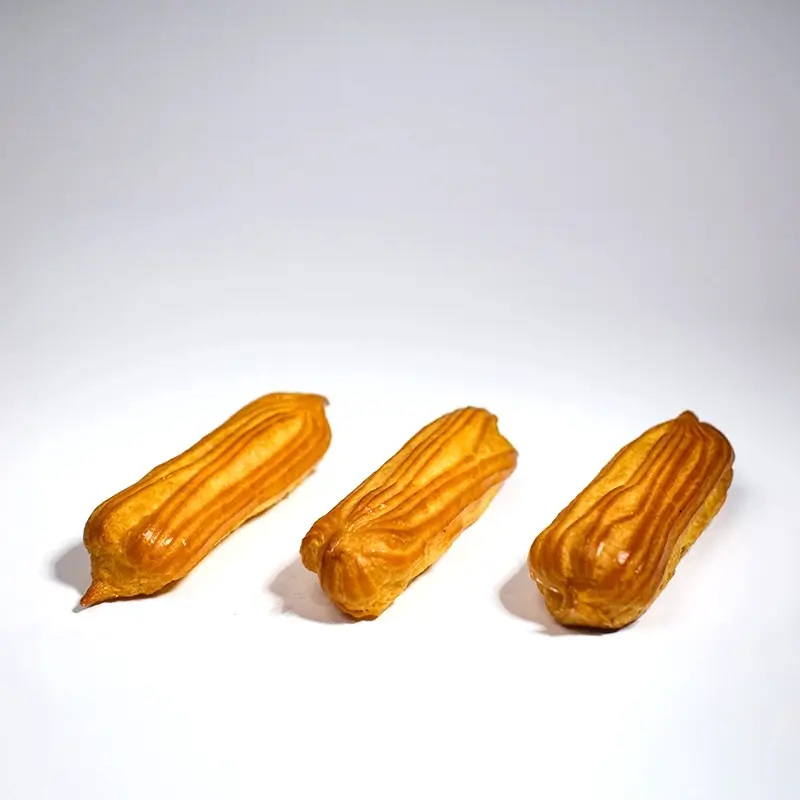 «Еклер вершки» — це класичний французький еклер, наповнений ніжним вершковим кремом. За основу служить легке й порожнисте заварне тісто, випечене до золотистої скоринки. Внутрішній простір заповнений кремом на основі натуральних вершків: він має шовковисту текстуру та тонкий ванільний або молочний аромат, який відмінно поєднується із нейтральним смаком тіста. Порівняно з глазурованими варіантами, цей еклер не має покриття, що дозволяє повністю насолодитися чистим смаком крему та тіста без зайвої солодкості. Ідеальний для тих, хто цінує класичні десерти без надмірностей, як акомпанемент до кави або чаю.