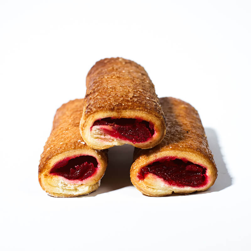 «Штрудель з фруктовою начинкою» — це тонке, ароматне листкове тісто, яке скручується в рулет і вкривається карамелізованим шаром цукру. Всередині ховається щедрий шар фруктового наповнювача: вишневий, яблучний або ягідний, який залишається соковитим і багатим на смак навіть після випікання. Поєднання хрусткої скоринки та м’якої фруктової серцевини створює гармонійний баланс текстур. Штрудель зручно нарізати порційно, подавати теплим або охолодженим до чаю чи кави, а також використовувати як десерт до святкового столу.