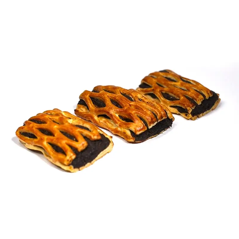 «Слойка царська з маком» — справжня королівська насолода для поціновувачів класичної здоби. Цей десерт складається з багатошарового листкового тіста, яке, завдяки майстерному складанню й випіканню, набуває надзвичайної хрусткої структури та ніжного масляного смаку. У середині слойки прихований щедрий шар макової начинки, збагаченої цукром і нотками ванілі чи меду, що надає ароматного післясмаку та легкої горіхової нотки. Верхній шар тіста розрізаний у вигляді решітки, що відкриває вигляд на чорну начинку та робить випічку дуже апетитною. Цей виріб ідеально смакує разом з чашкою гарячого чаю чи кави, стане чудовим десертом на свята або теплим домашнім прийманням.