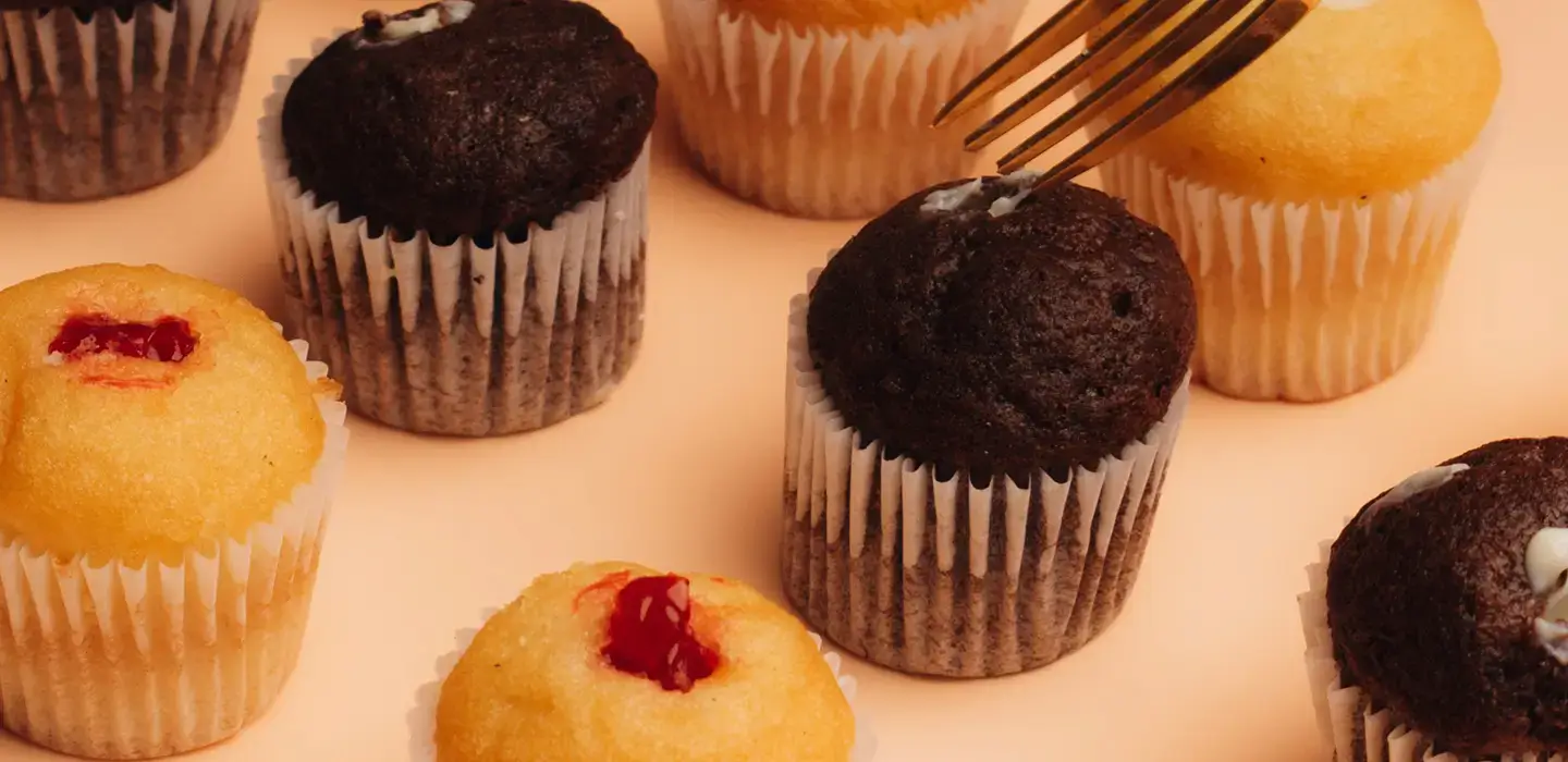 Міні мафіни шоколадні зі смаком пряженого молока — компактні та ніжні кекси з насиченим шоколадним смаком і карамельними нотками пряженого молока. Чудовий перекус до кави чи чаю.